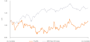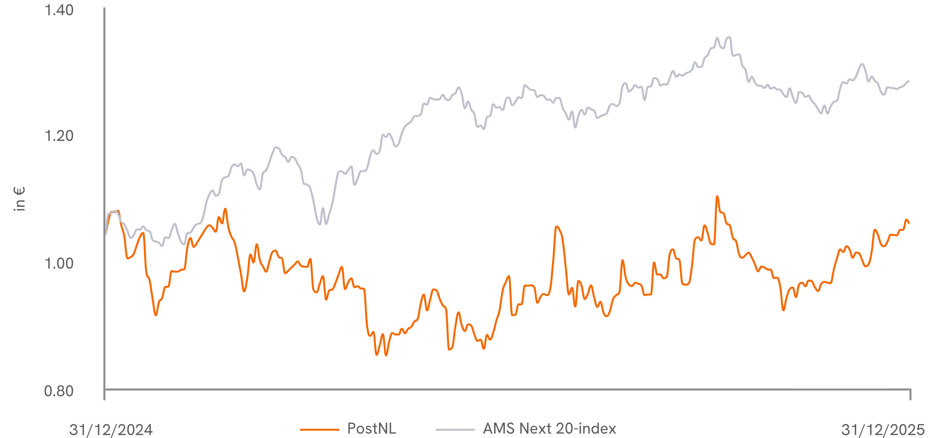 PostNL Relative performance PostNL compared to AMS Next 20-index